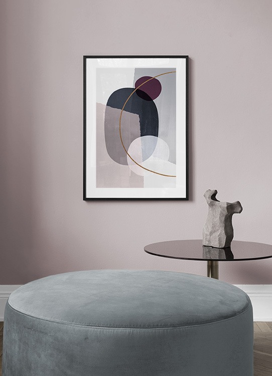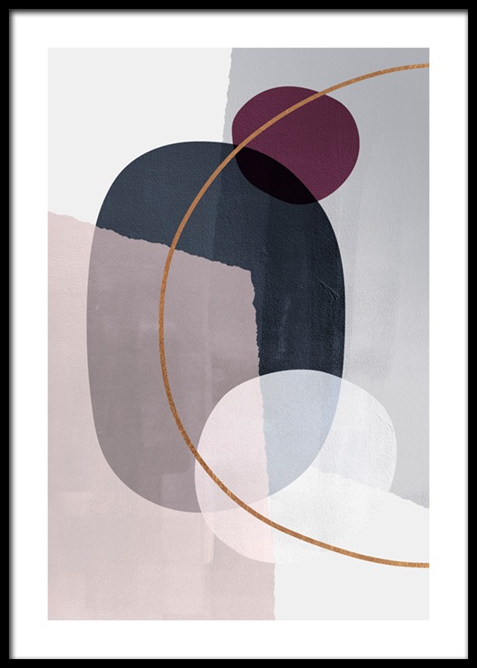 Handpicked design Graphical illustration with abstract shapes in blue and pink with the outline of an orange half-circle. Graphical art is fantastic as there's something for everyone, and you can find lots of designs in different colours.