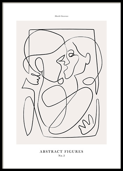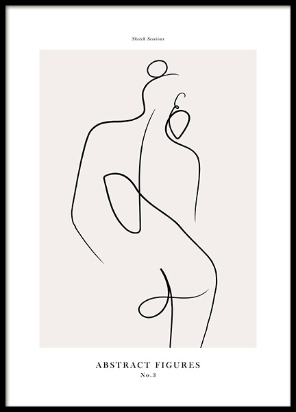 Handpicked design Abstract line art illustration of a body in black on a beige background, with text at the top and bottom. If you want to make sure your home stays on top of trends, line art is a must have! Pair this print with Abstract Figures No2 or Abstract Figures No3 for a perfect pair.