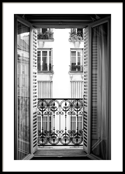 Handpicked design Parisian poster photographed by our creative team. Paris is said to be one of the world’s most beautiful cities, and this poster depicting French balconies and an ornately detailed façade does not contradict this. The poster has a white border which elegantly frames the design.