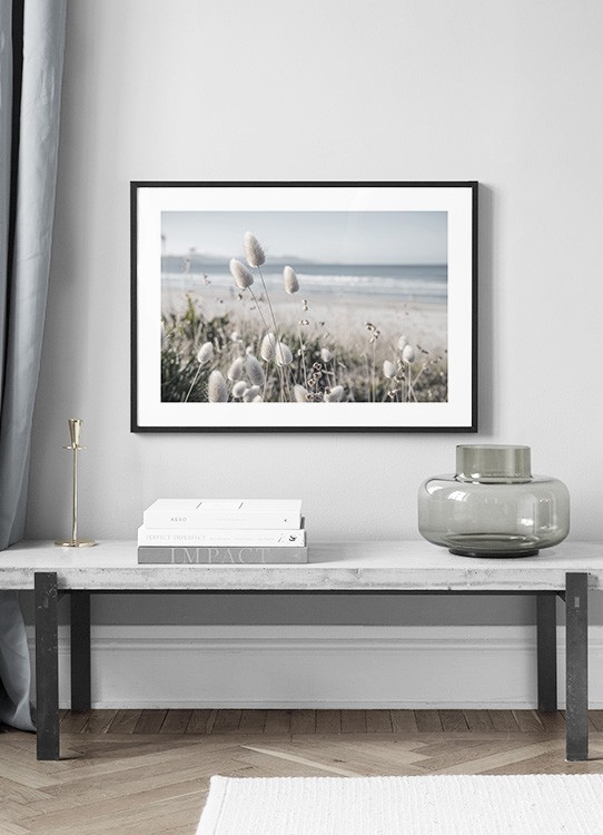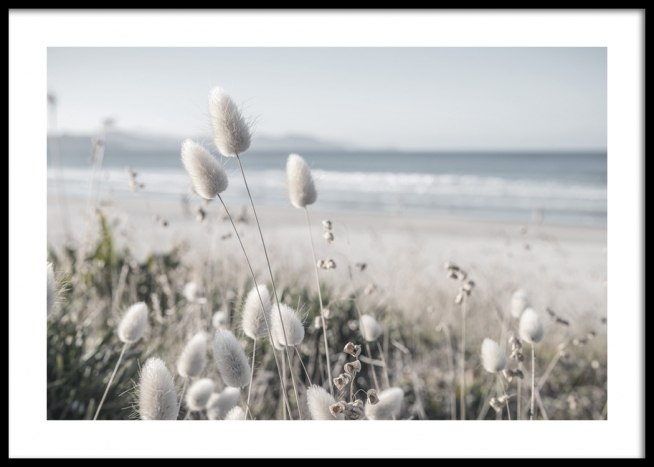 Handpicked design Photograph of white dune grass with a beach and the ocean in the background. This dreamy view will look perfect in both a living room or bedroom, all depending on which style you want to accomplish!