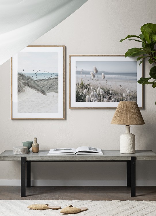 We have a large collection of different beach photos, and perhaps it is where you will find your new favourite! We have all sometimes dreamed ourselves away to that summer trip we loved and miss so much, and what better way of going back than decorating with photos with a summery feel! Choose prints from your favourite location in your favourite colour, and create the gallery wall you always dreamed about. Pink sand, clear ocean waves and blue skies - we cannot get enough! Mix prints of different shades for a dimensional collage, only your imagination can set the limit.