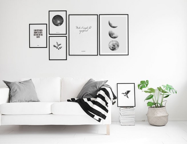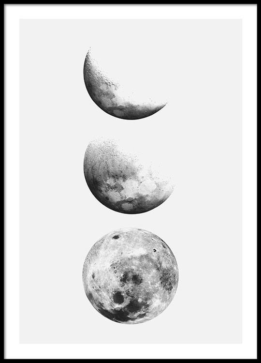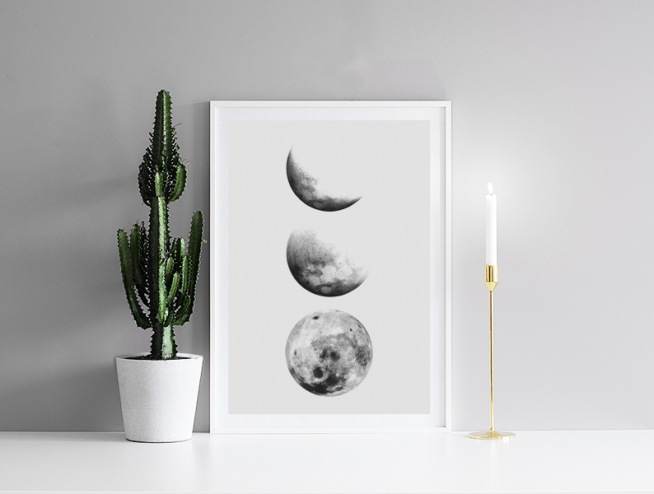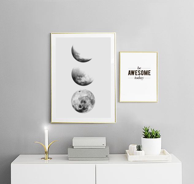 From €5.57Illustration in black and white of three moons in different phases with a light grey background. To find peace of mind in your home in a stressful everyday might be hard, but with a mindful gallery wall in your home you'll be one step ahead.