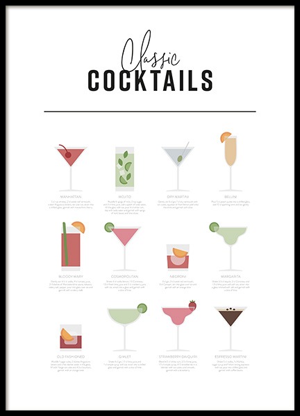 Classic Cocktail Guide Poster