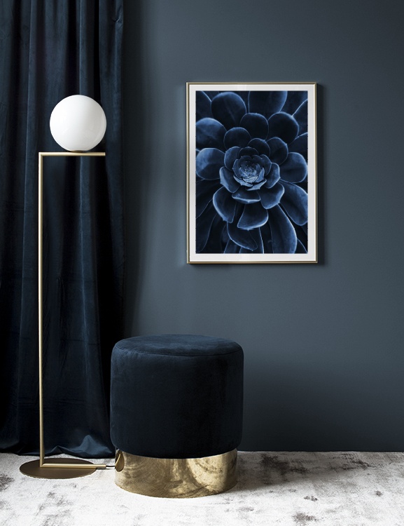 Handpicked design Photograph of a dark blue succulent. Plants and flowers makes one's home feel much more live and breathing, and in a home where minimalism is in focus, a print rich in colour and contrast makes all the difference!