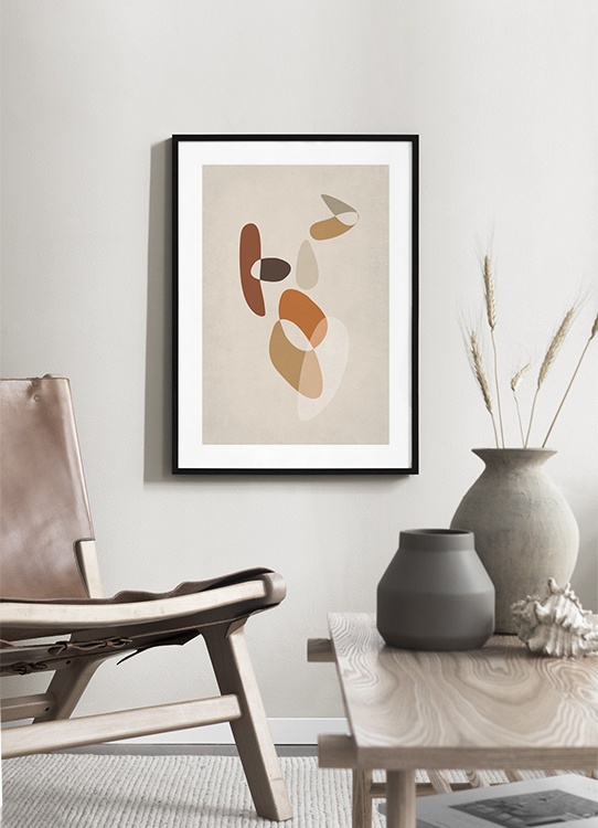 Handpicked design Graphic illustration with shapes in brown and orange forming an abstract body against a beige background. If your interior style plays with modern influences, graphic art will fit perfectly! Pair this print with Body Shapes No2 for a perfect pair.