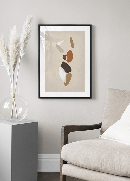 Handpicked design Graphic illustration of an abstract body made up of orange and brown shapes on a beige background. Give your home a modern look with this graphic print! Pair it with Body Shapes No1 for a perfect pair.