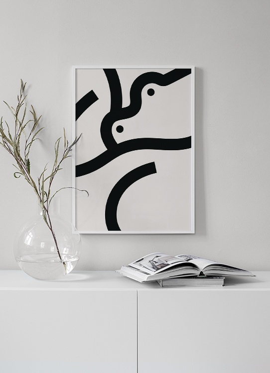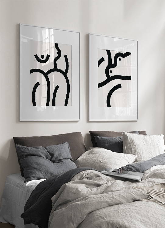Handpicked design Abstract illustration with boobs drawn with bold, black strokes on a light beige background. A graphical illustration is a must for each home we believe! This abstract design fits perfectly in a gallery wall with other illustrations or some photo art. Or better, pair it with Bold Body No1 for a perfect pair!