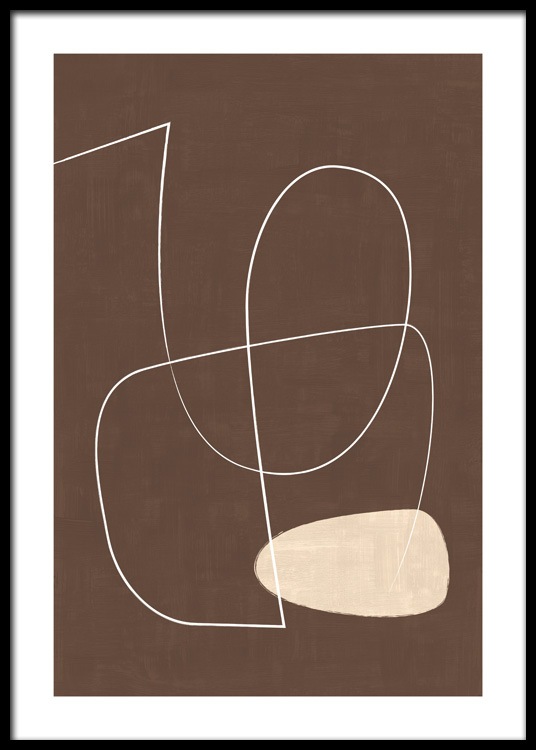 Handpicked design Illustration with a thin, white line and a beige oval shape on a brown background with a speckled background. If you're a fan of deep and earthy hues and want to create a peaceful home, this print will look great on your wall!