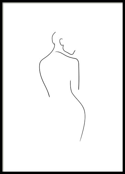 Handpicked design Line drawing of the silhouette of a woman in black on a white background. Simple lines and line art is an easy way to bring more trendy art into your home, and with this cute and minimalistic illustration you can be sure to have a home where you keep up with trends and interior design.