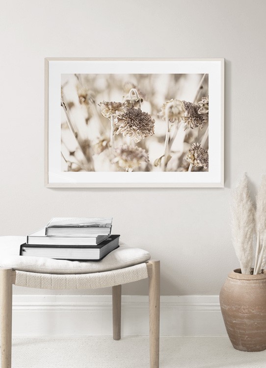 From €13.97Photograph with close up of beige, dried flowers. Botanical prints fits every room, and depending on your own style they're perfect to pair with other botanical designs, or photo art in black and white for a classy and timeless look!