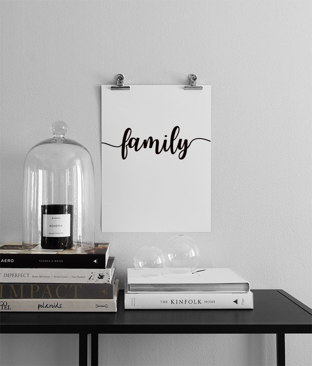 Handpicked design Typography prints are a hot trend, and this poster with the word 'Family' written in black on a white background is a perfect example. A poster that's easy to combine with others and that constantly reminds us of our loved ones. You can find all our posters with quotes in our Typography and Quotes category.