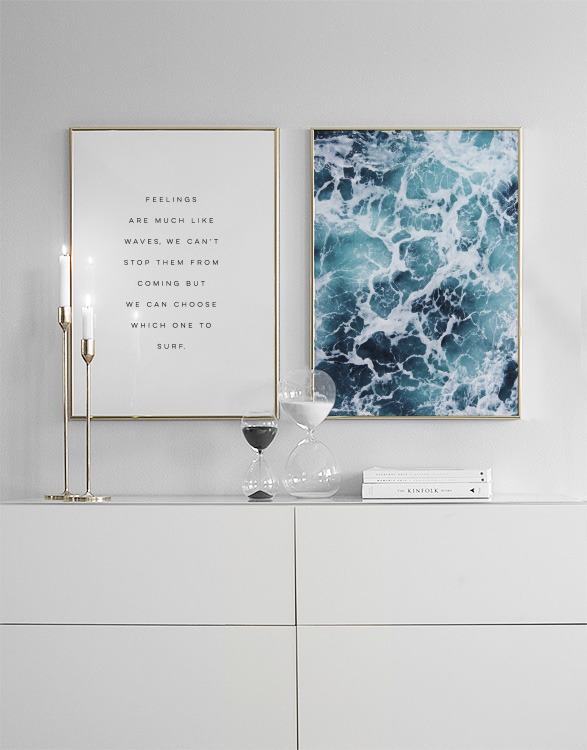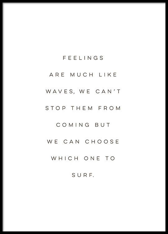 From €9.10A nice typography print with a quote and message. Feelings are much like waves, we can't stop them from coming but we can choose which one to surf.A motivational poster with a stylish minimalistic design which makes it ideal in a clean interior design. Perfect for a picture wall.