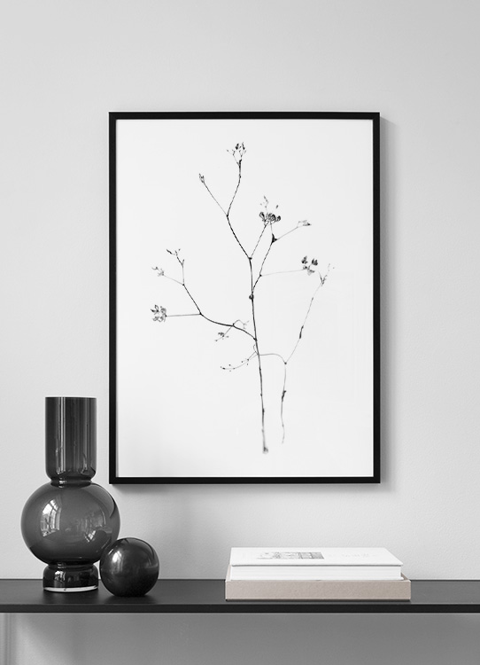 From €6.58Photograph in black and white of a small flower with thin branches against a white background. This minimalist floral print will look great in a gallery wall with either black and white photo art, or paired with more of your favourite floral styles. Find them in our category Botanical!