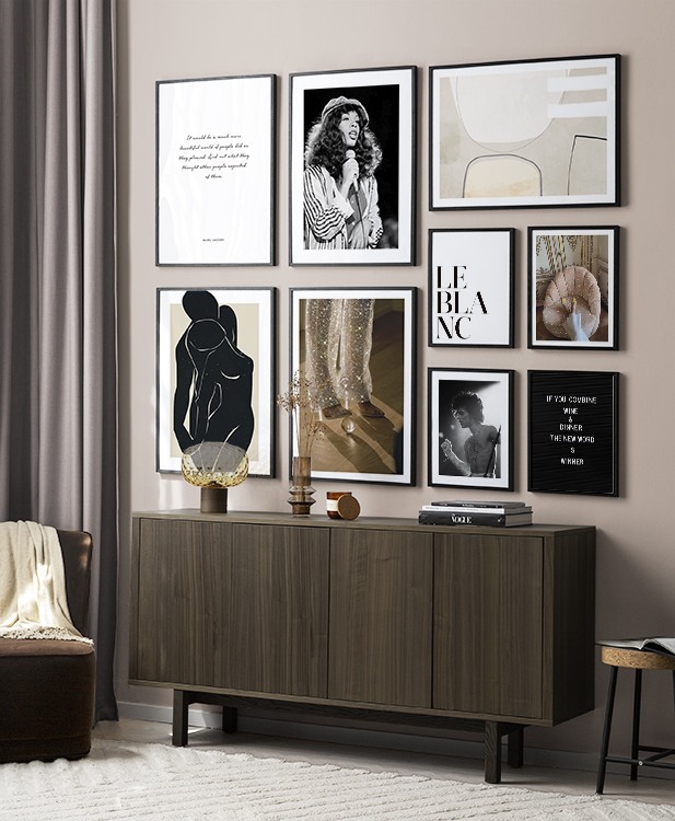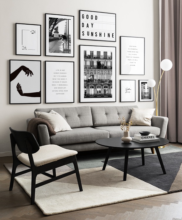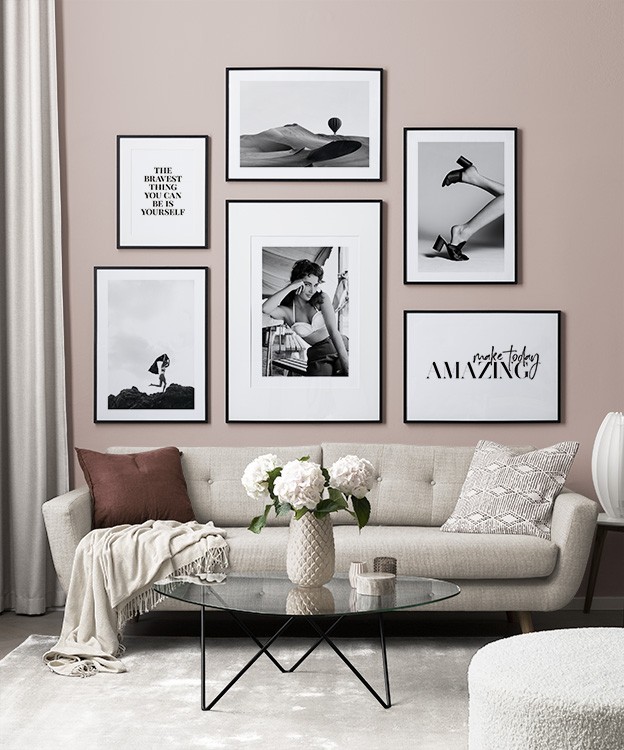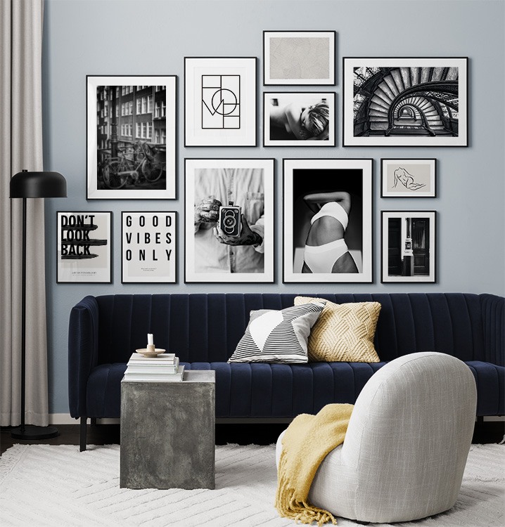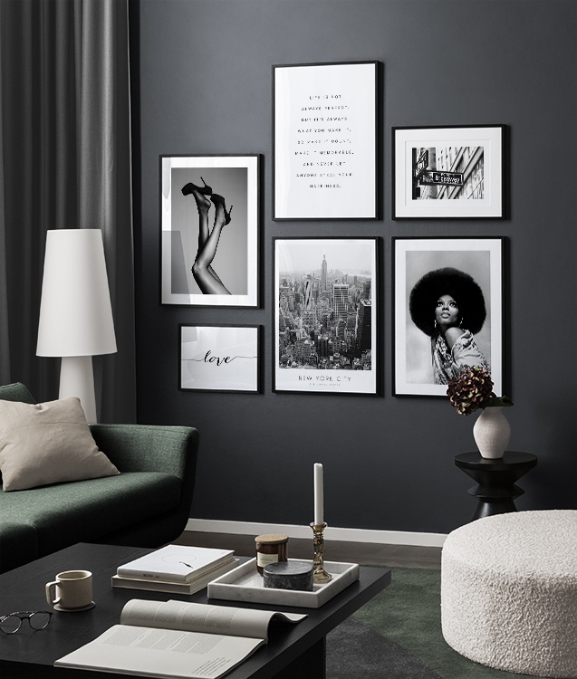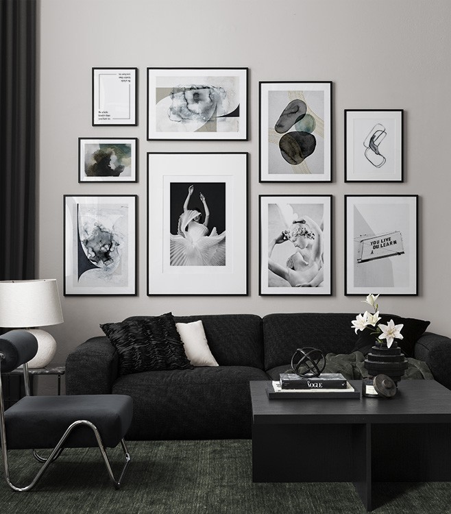 Browse among inspiring gallery walls showcasing both contrast-rich black-and-white posters and those with a softer greyscale. Trendy monochrome or black-and-white classics – we have black-and-white gallery walls to suit everyone!