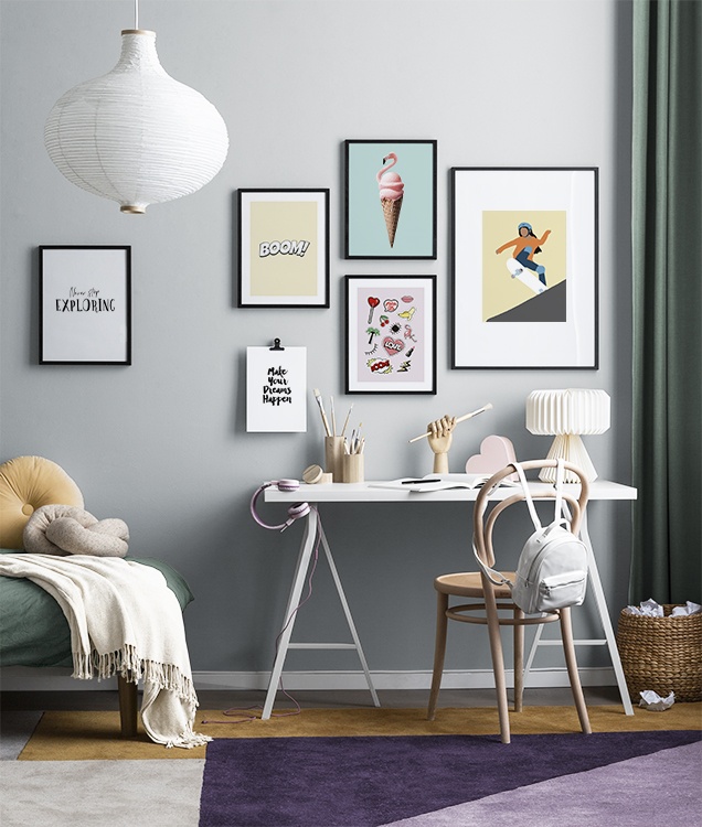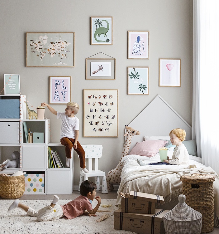 As children grow, their interests also change – to avoid having to frequently redo your child’s room, use washi tape or poster clips, which don’t leave holes or marks in the walls, when replacing posters and prints. Unleash your imagination when decorating your child’s room! To buy any of our children’s room poster combinations, just click the picture or visit our Kids Posters category to view all of our designs.