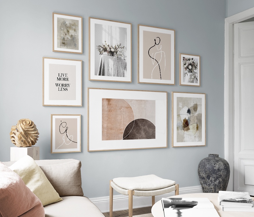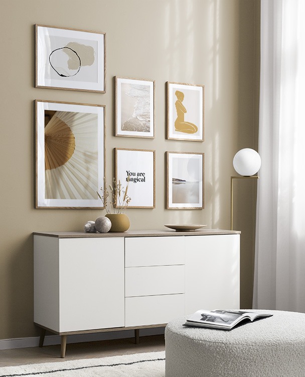 Graphic prints and posters adds a modern and artistic touch to your home, and our gallery walls with graphic prints can be put in all rooms of your home. You're the only one who can set the limit, so perhaps this is the time to step out of your comfort zone and choose a graphic gallery wall that's a bit spaced out?