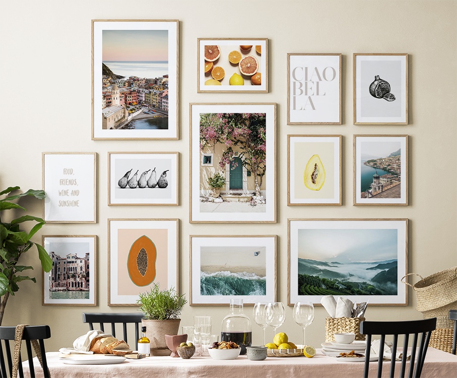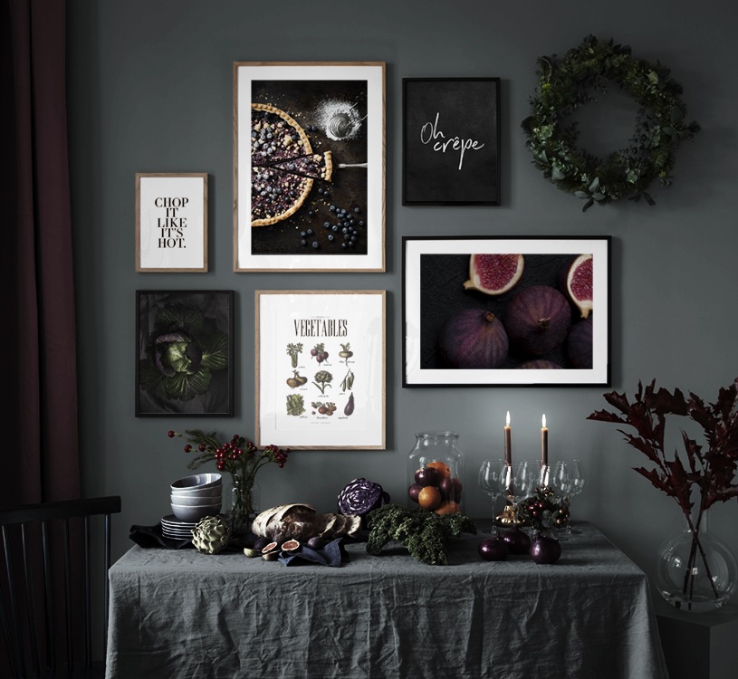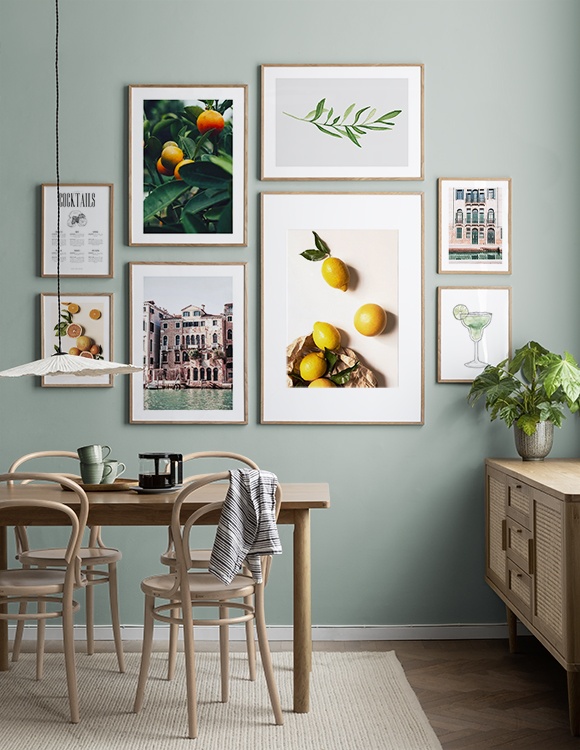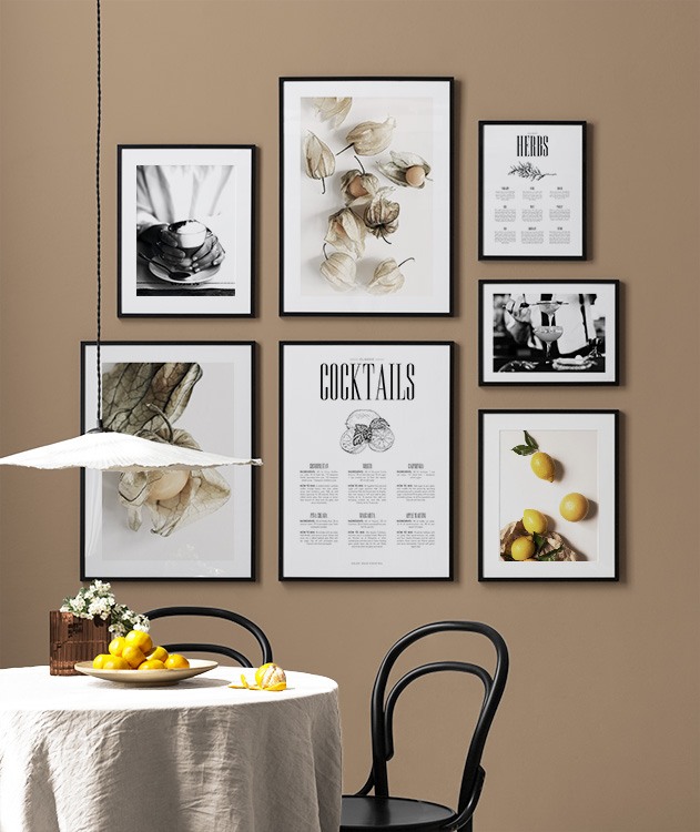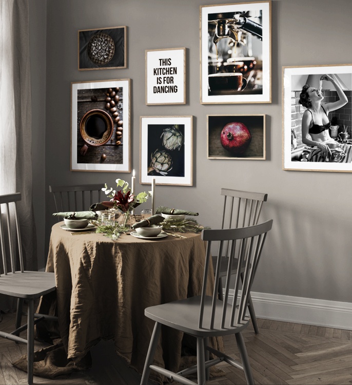 No matter if you prefer kitchen decor with a countryside feel, a stylish touch or a more rustic look, we have a kitchen posters and prints for you and your kitchen. Soft, muted colours work well in kitchens and add some warmth and cosiness. Use spices, fruit, cutting boards and recipe books that match your gallery wall to achieve a truly personal and vibrant feel. Find inspiration for your kitchen decor here!