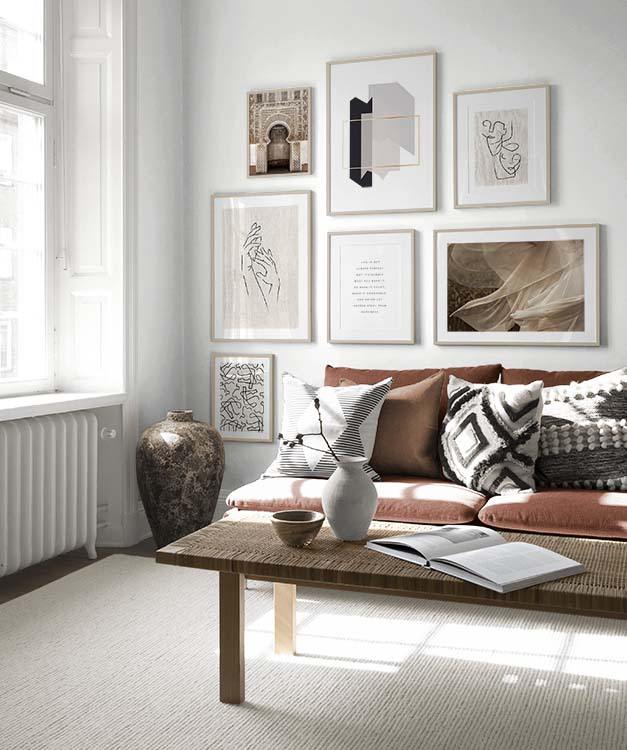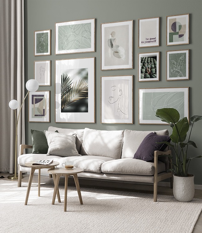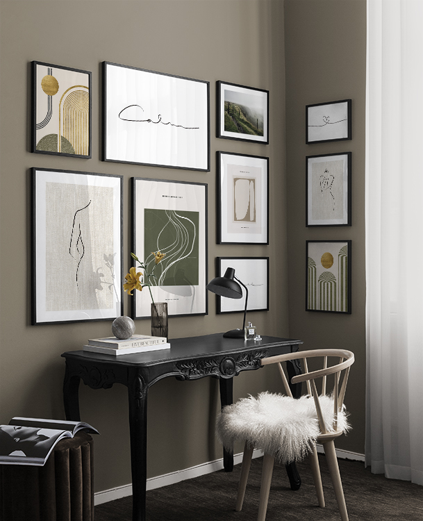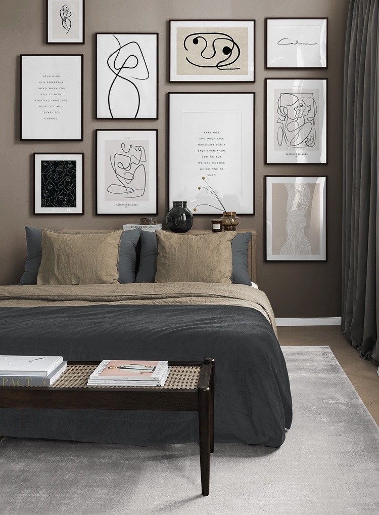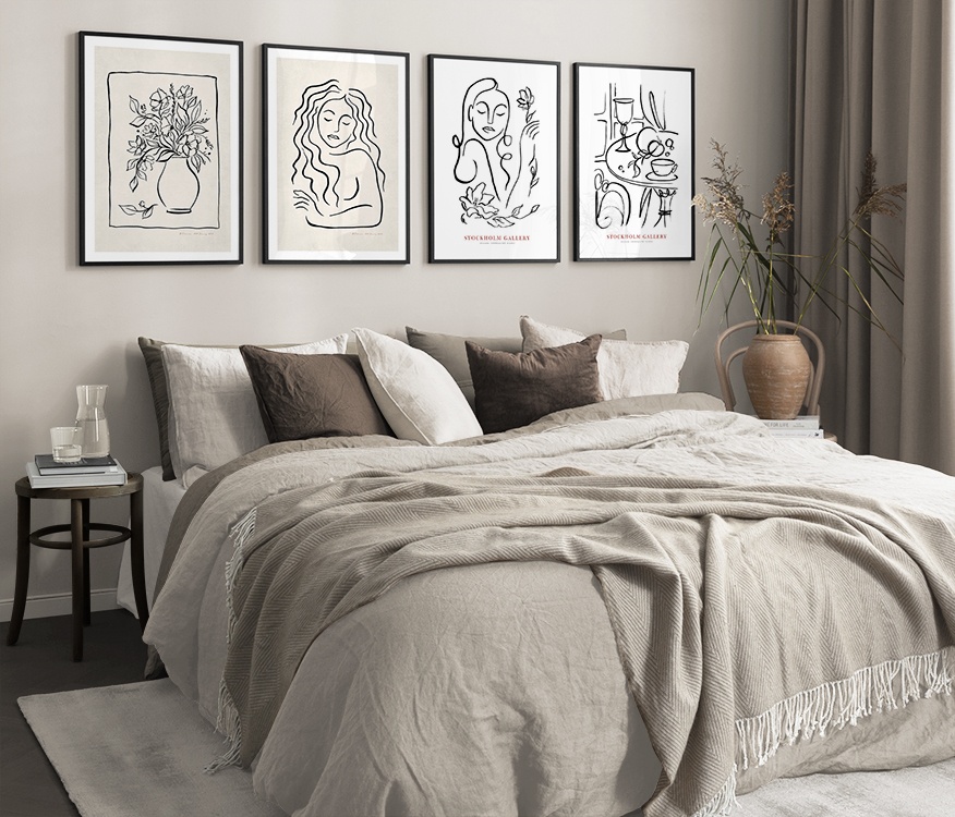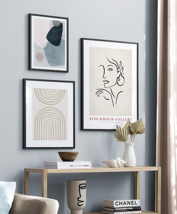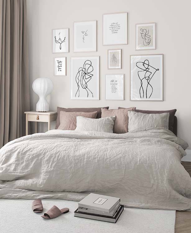 Our gallery wall category with line art designs showcase the beauty of the simple things, and you'll find gallery walls fitting both for bedrooms and living rooms! Our line art gallery walls offer sets in both bright colours and muted neutrals, and there is something to fit every style and home.