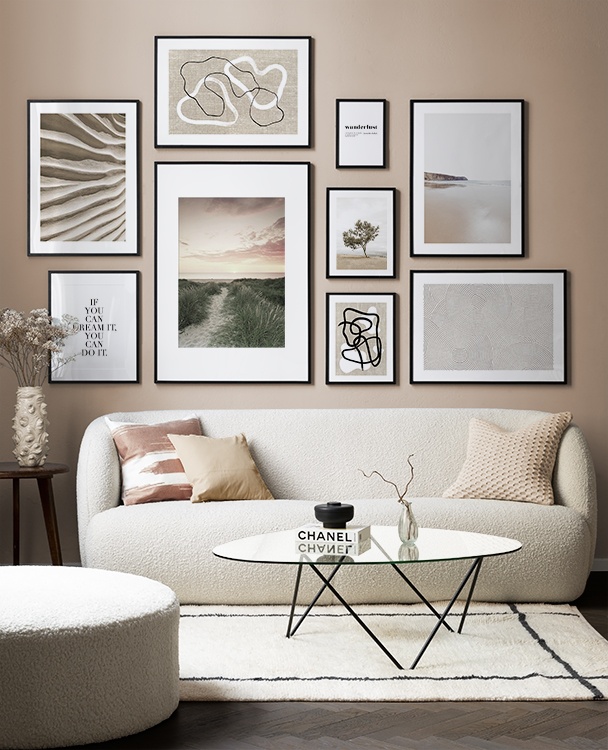 Gallery walls with nature prints is a great choice for when you want to create a mindful home that is connected with nature. Our beautiful world has so much to offer, and amongst our gallery walls featuring nature prints you'll find various themes, ranging from oceans to mountains and deserts.