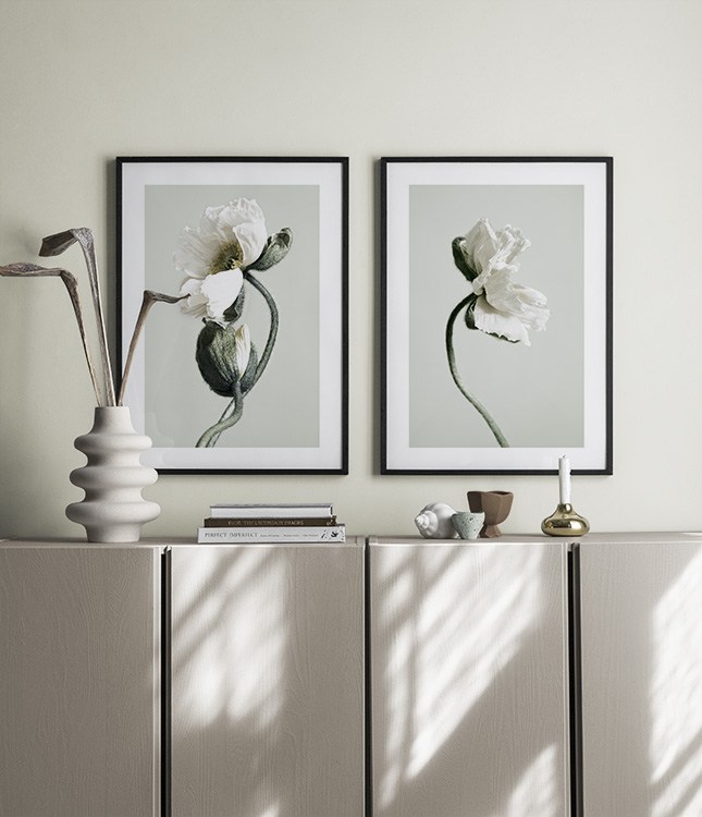 We love discovering ultimate art combinations that create a perfect symbiosis between two poster designs. That’s why we’ve paired up the posters we love here! We’re playing around with posters that have the same themes and sizes, but also with completely different designs, formats and sizes that form a perfect whole. Here are poster pairs to draw inspiration from when you spruce up your walls at home. Perhaps a black-and-white photo poster alongside a typographic print, or why not two matching floral posters?