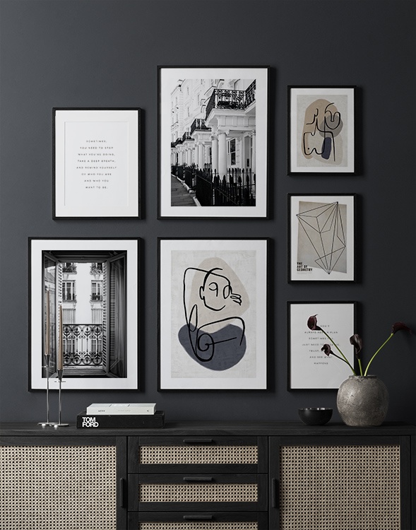 Explore our gallery walls with photo art! Photo art includes a wide range of prints, and here you'll be able to find gallery walls with both prints in black and white, vintage photographs and portraits. With a gallery wall featuring photo art your home will get a well deserved lift!