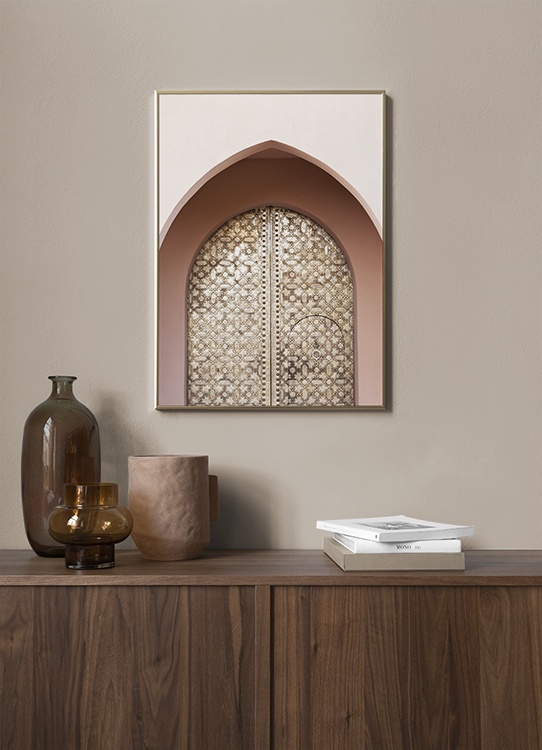€22.72Photograph of an oval, golden door and a pink arch in front of it. Soft hues and an abundance of hand crafted architecture is what makes us amazed by the beautiful places in Marrakech. This print is part of Studio Amara, a photo collection shot by Desenio Design Studio in Marrakech.