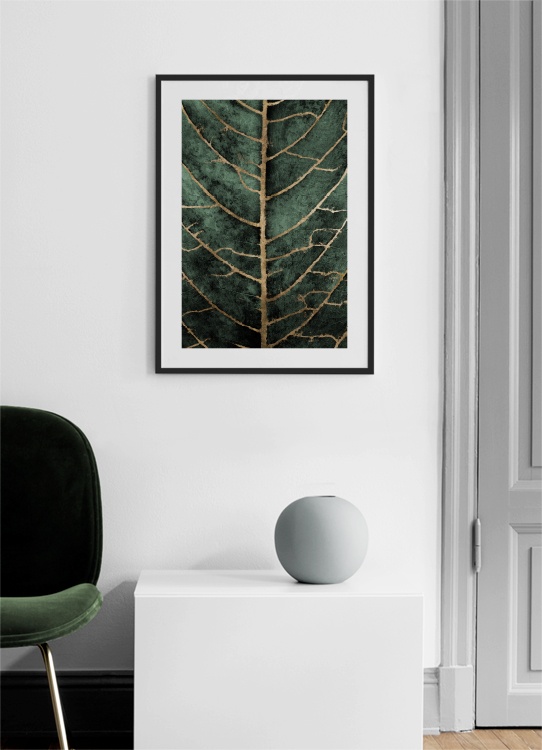 Golden Green Leaf Poster in the group Prints / Art prints at Desenio AB (12266)
