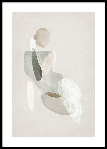 From €9.10Watercolour painting with abstract shapes in green and beige forming a body on a beige background. If you have a smaller space to fill, two prints are a perfect fit! Together with Graphic Body No1 this print makes a perfect pair.