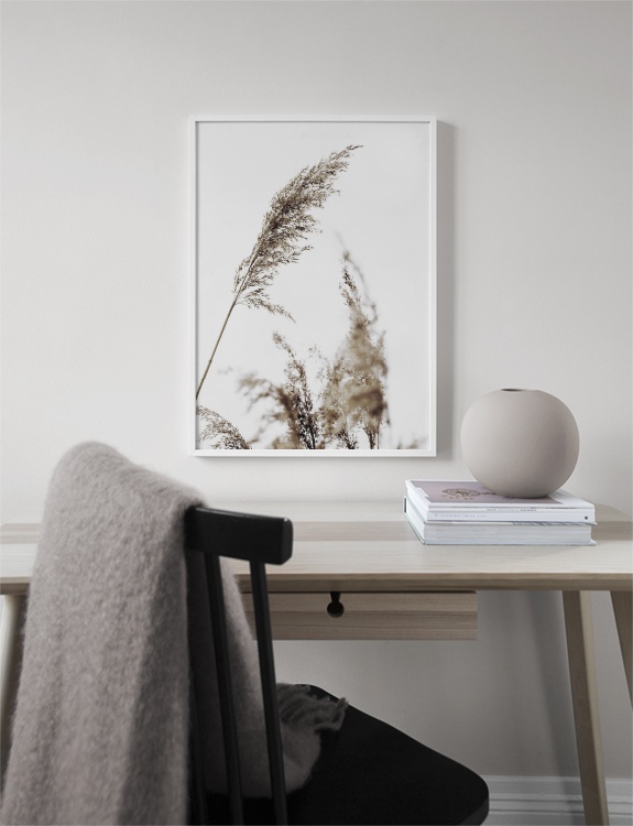 Handpicked design Nature print with photograph of beige, dry grass against a light grey background. These earthy tones will work well in any home and is perfect for hanging in a hallway. Nature prints can also be matched with other posters, both botanicals or mindful text and quote posters.