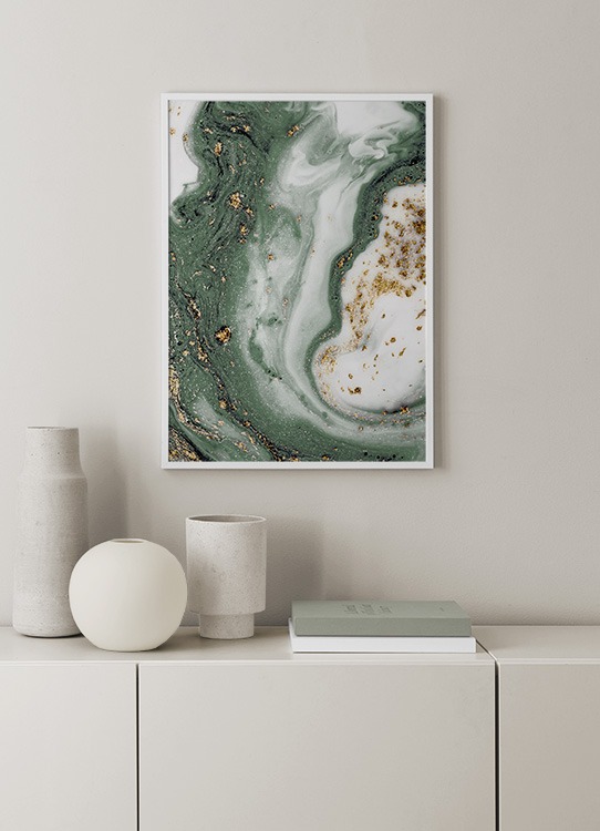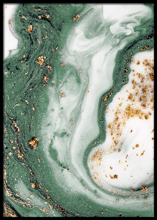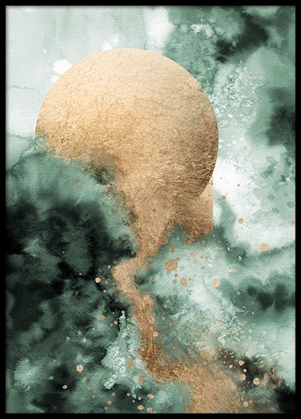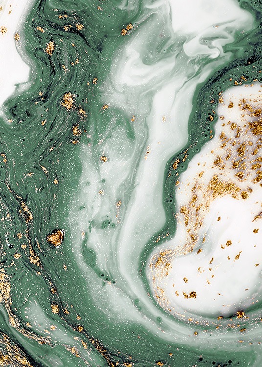 From €9.10Abstract art print with a swirl pattern in green, white and gold. Let loose, bring out your creative side and step out of your comfort zone for a while! Abstract art will never go out of style, and this print is no exception.