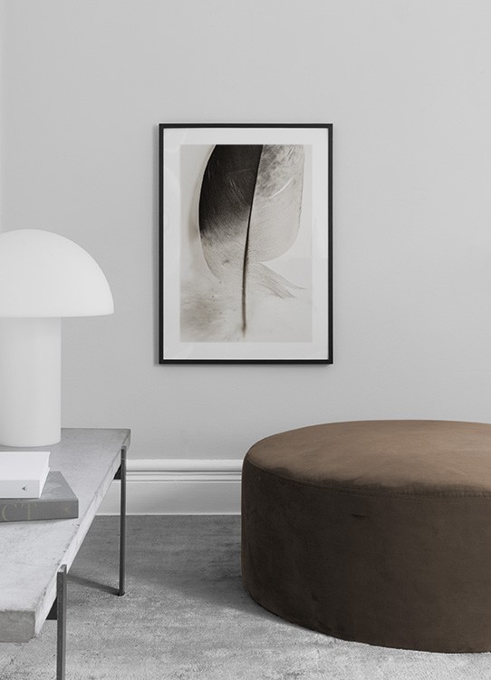 Handpicked design Photo art with close up of a beige and black feather against a light background. Decorate your home with prints with a sense of mindfulness and put your mind at ease. Find more photo art in the category Photography.