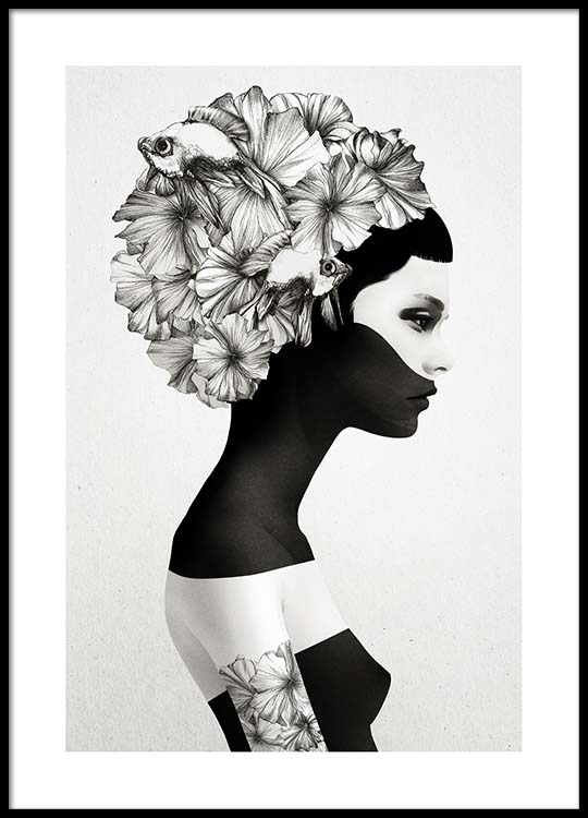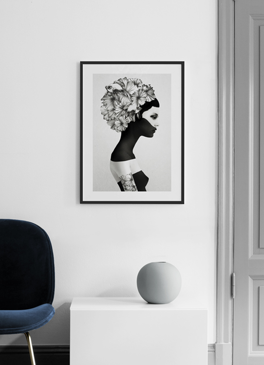 Handpicked design A cool poster with a hand-drawn design of a woman with body painting and flowers in her hair. If you want an interesting picture that really stands out, then this one is perfect for you.