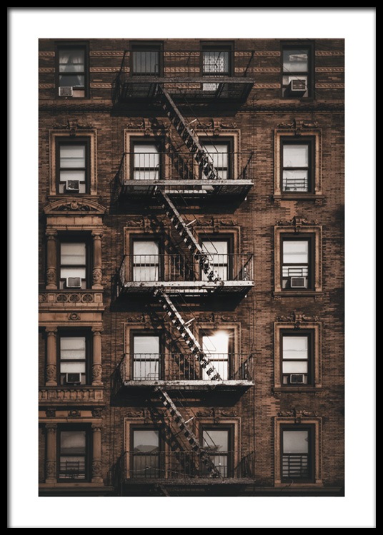 Handpicked design Photograph of windows and a fire escape on the outside of a brown building. If you can't go to New York, bring it home instead! With prints of New York you'll be able to feel the city pulse right in your own home.