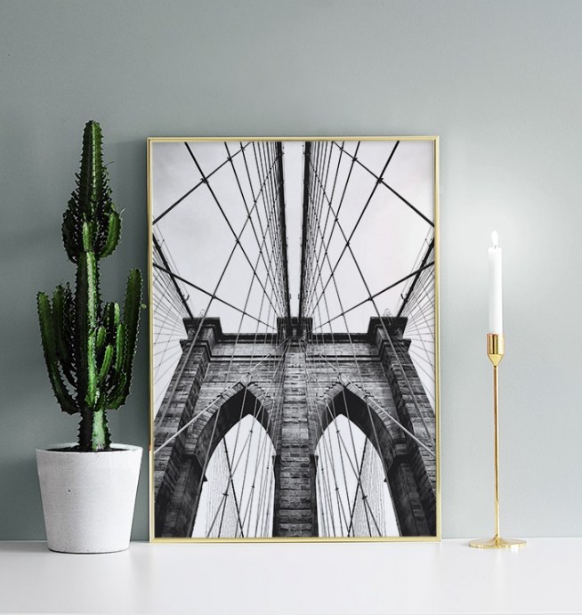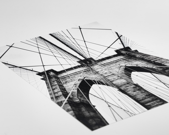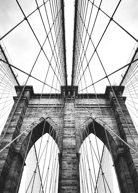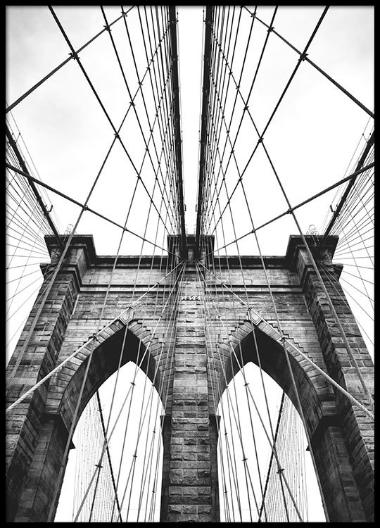 Handpicked design Print with a photo of the Brooklyn Bridge architecture. Black and white photo wall art, looks good alone or in a collage.