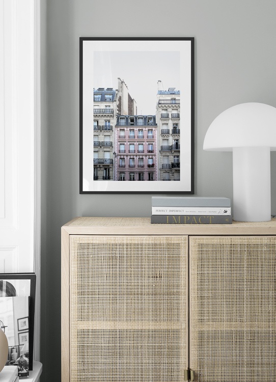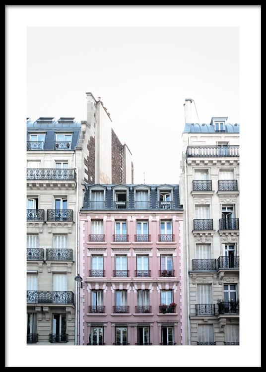 - Photo poster of a pink house facade in Paris.