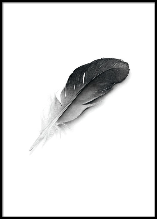 Posters, affischer i svartvitt. Snygg tavla med fjäder. Nordisk inredning.