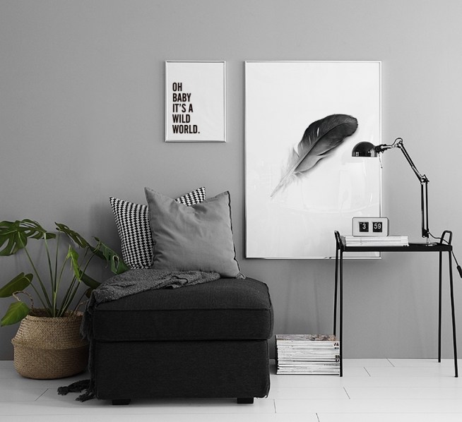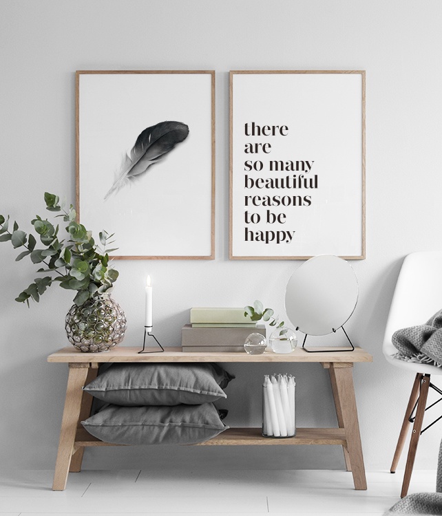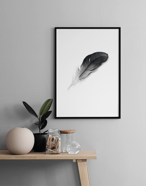 Handpicked design Poster with a black and white feather. A beautiful art print that looks great in a Scandinavian home. This is one of our most popular prints and we definitely understand why. Nature is one of the greatest sources of inspiration to Scandinavian interior design, the most important aspects being the utilisation of light colour schemes and also eliminating superfluous detail and focusing on the simplistic.