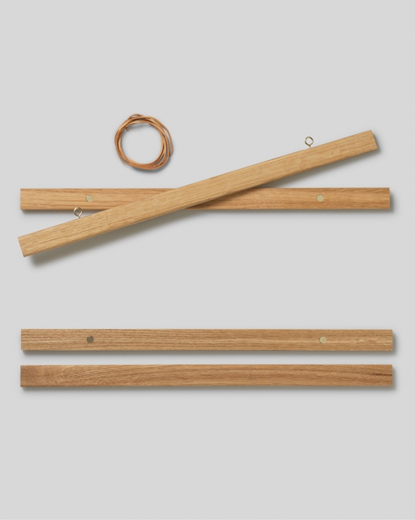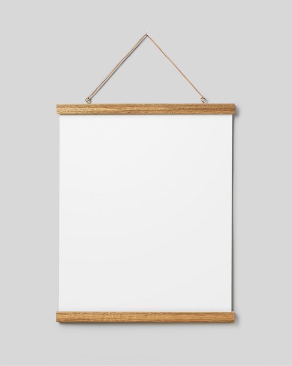 Handpicked design Oak poster hanger with magnet fastening. This poster hanger has a smart magnetic design, which holds the poster firmly without damaging it. Fitting for portrait format prints in 40x50 and landscape format prints in 30x40. Watch the short instruction film in the side picture menu on how to secure your poster!