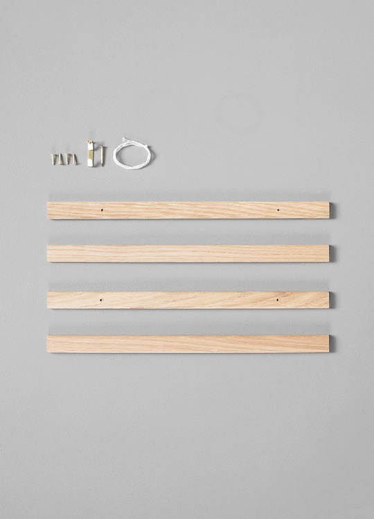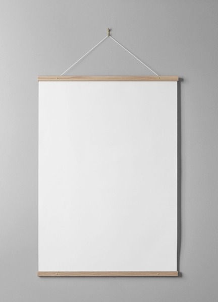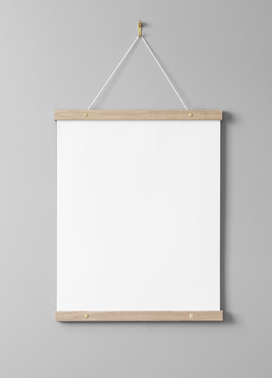 Handpicked design Poster hanger in oak fastened by brass screws. This poster hanger fits portrait format prints in 40x50 and landscape format prints in 3x40. For best results, use a screwdriver to mount the poster hanger (screws and hanging rope are included). Watch the short instruction film in the side picture menu on how to secure your poster without damaging it.