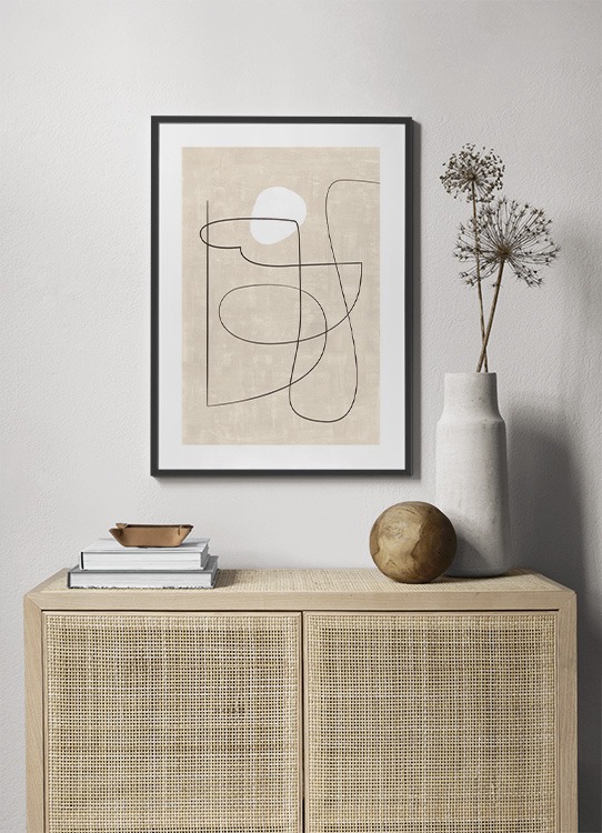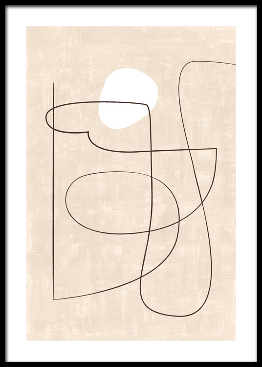 Handpicked design Illustration of a dark brown line and white shape against a beige background with a speckled structure. Adding prints in light colours will make your home feel bigger, and it's perfect for a smaller room.