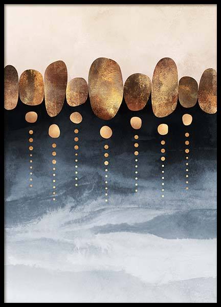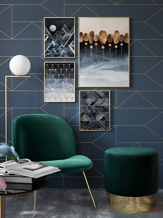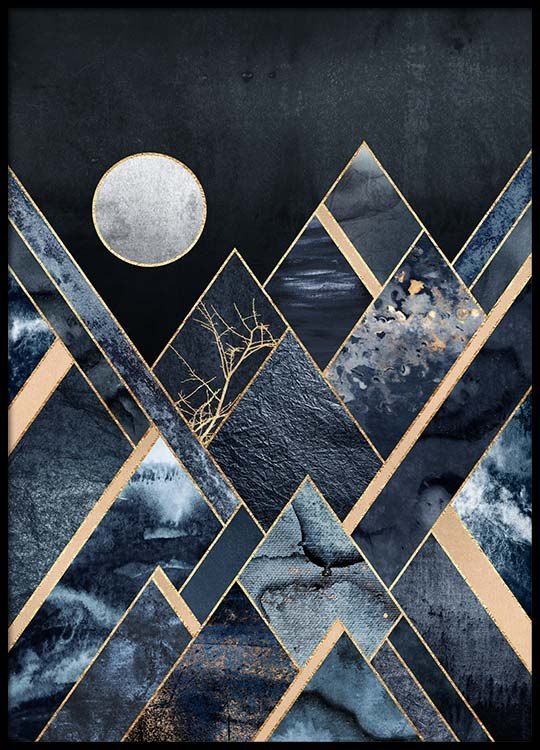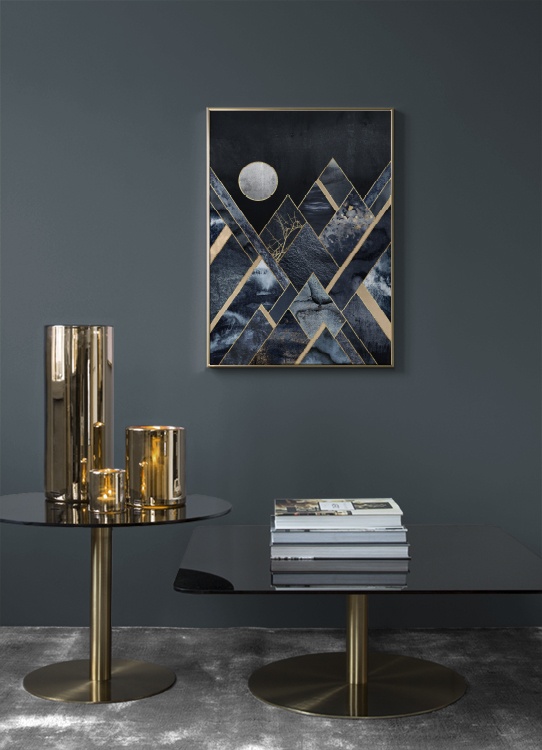 Handpicked design The design has been created by Elisabeth Fredriksson. Stylish print featuring a graphic design in blue tones with gold details, making an attractive addition to the walls of your home. Bring a sense of vitality to your walls, while giving your home a more personal touch, by hanging modern prints to enjoy and be inspired by. Uncertain about how you want to arrange your prints? If so, take a look at our Inspiration section for tips and ideas on how to hang your prints.