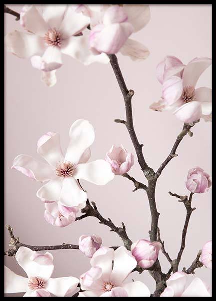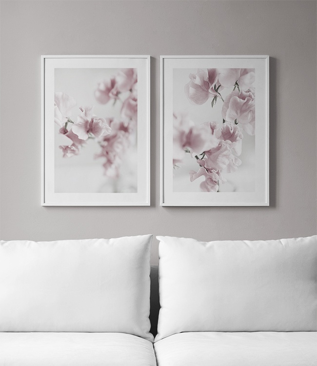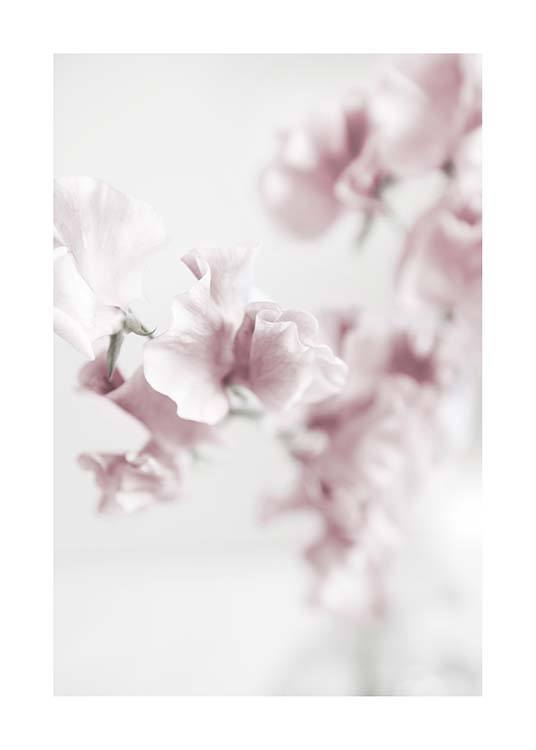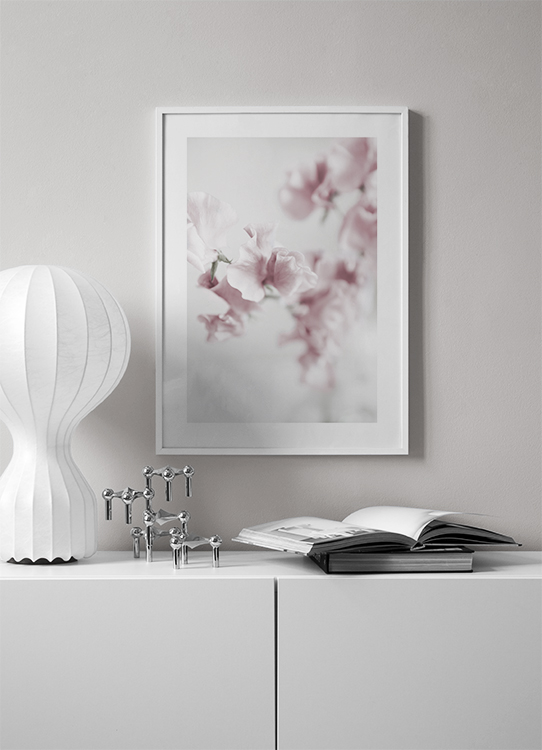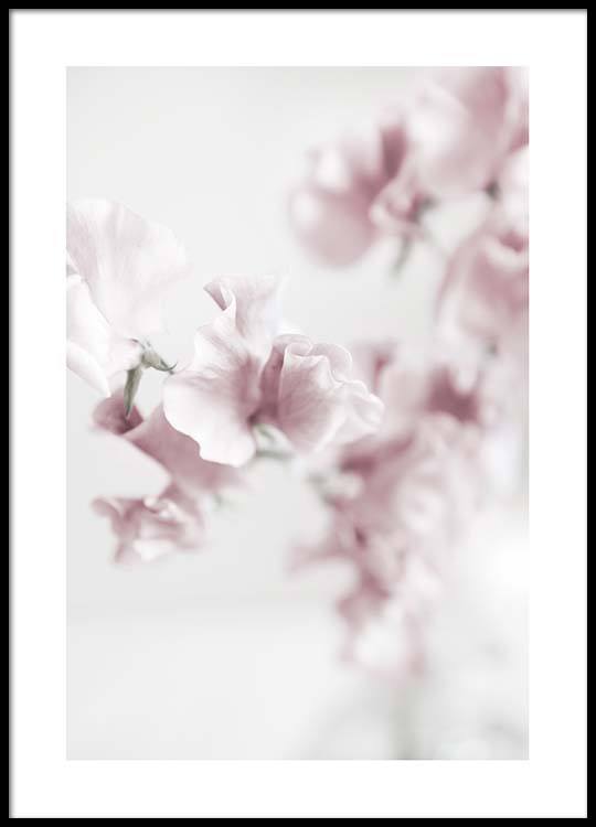 Handpicked design Stylish photo poster of pale pink flowers. Modern photo art with floral designs is perfect for any home and an elegant decoration in, for example, a living room. Poster with white border which elegantly frames the design.