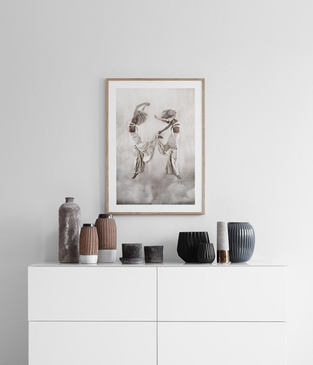 Handpicked design Tove Frank's photo art has become immeasurably popular and we understand why! The Spirit Flight poster depicts two women in white against an abstract background. Tove Frank has worked as a photographer for many years and her posters and prints showcase her distinctive expression and are appreciated by many. We have several photo posters and prints from Tove Frank in our range. The poster has a 'built-in' mount which elegantly frames the image.