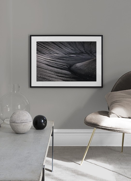 Handpicked design Photograph of a black, volcanic crater. Prints in darker hues will add a sense of depth to your living space, and make it feel more dimensional. Match the design with more photo art from our category Nature!