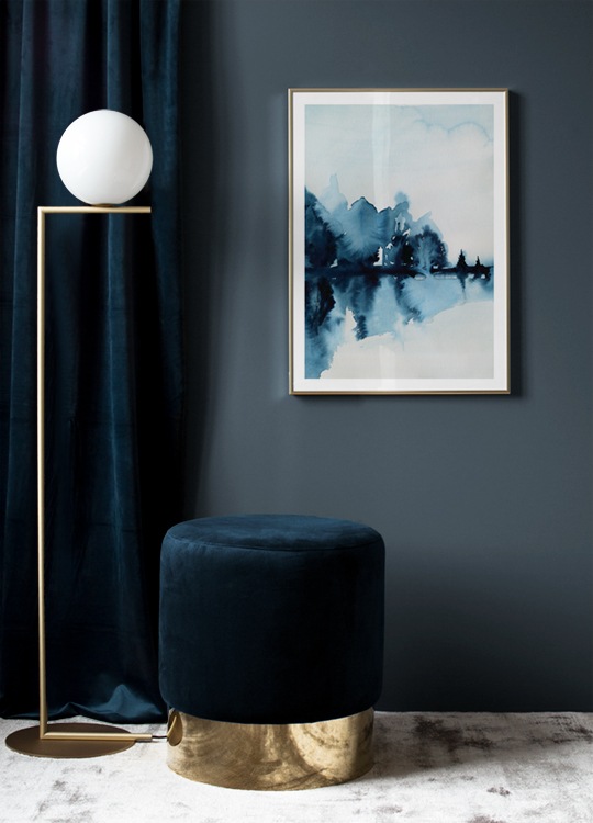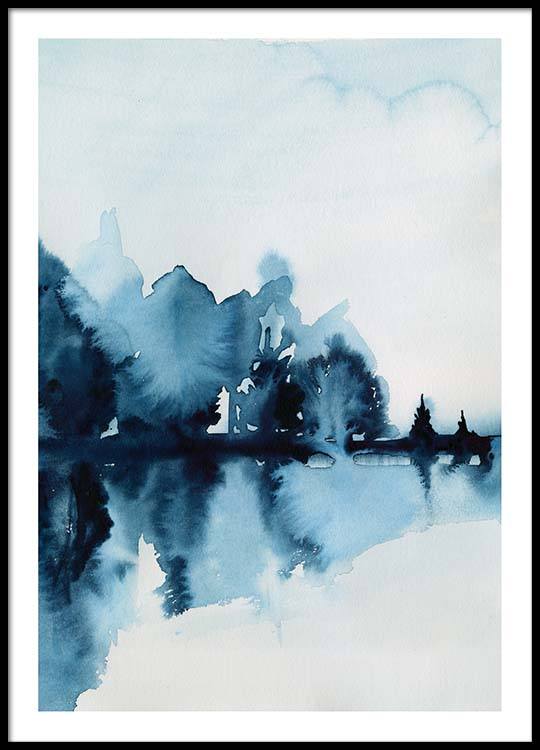 Handpicked design Elegant poster with a natural design in watercolour. The gorgeous artistic design in blue with reflected trees is perfect for hanging as a decoration in, for example, a living room. Decorate your home with beautiful art to give it a personal feel!