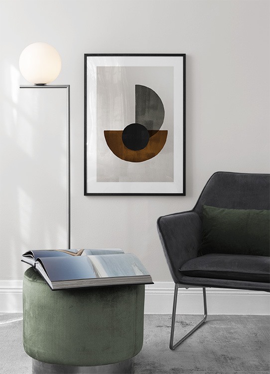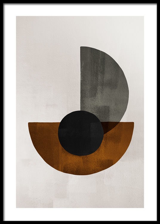 From €10.50Graphical illustration with a beige background and brown, grey and black geometric shapes. The structure from the canvas adds a nice dimension to the print, and with this art piece at home you'll stay right on trend.
