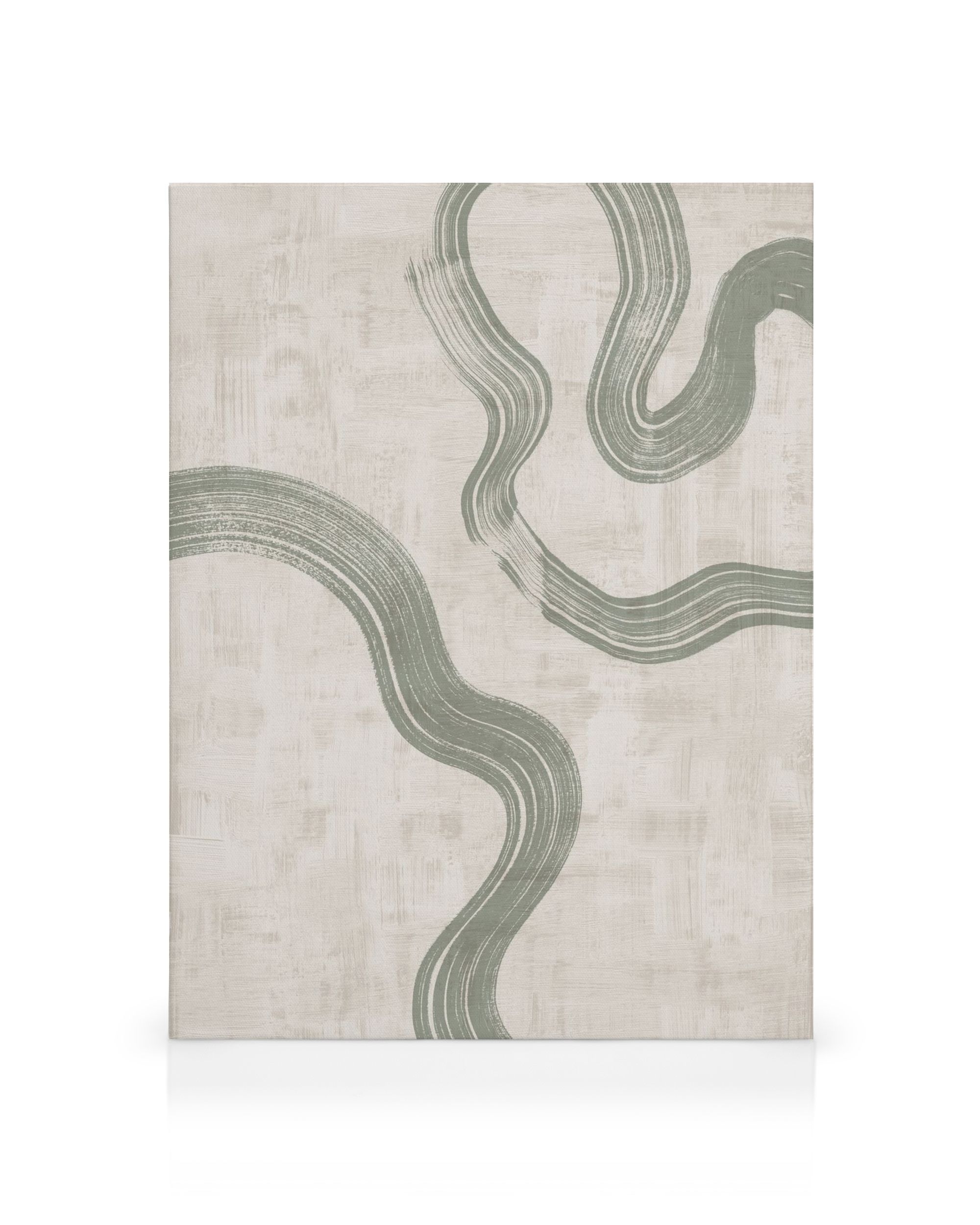 Abstract art with green painted swirls on beige structured background, with "Abstraction Art sessions in July" written underneath. Decorating your house with abstract art is always a safe card to play, regardless of season.