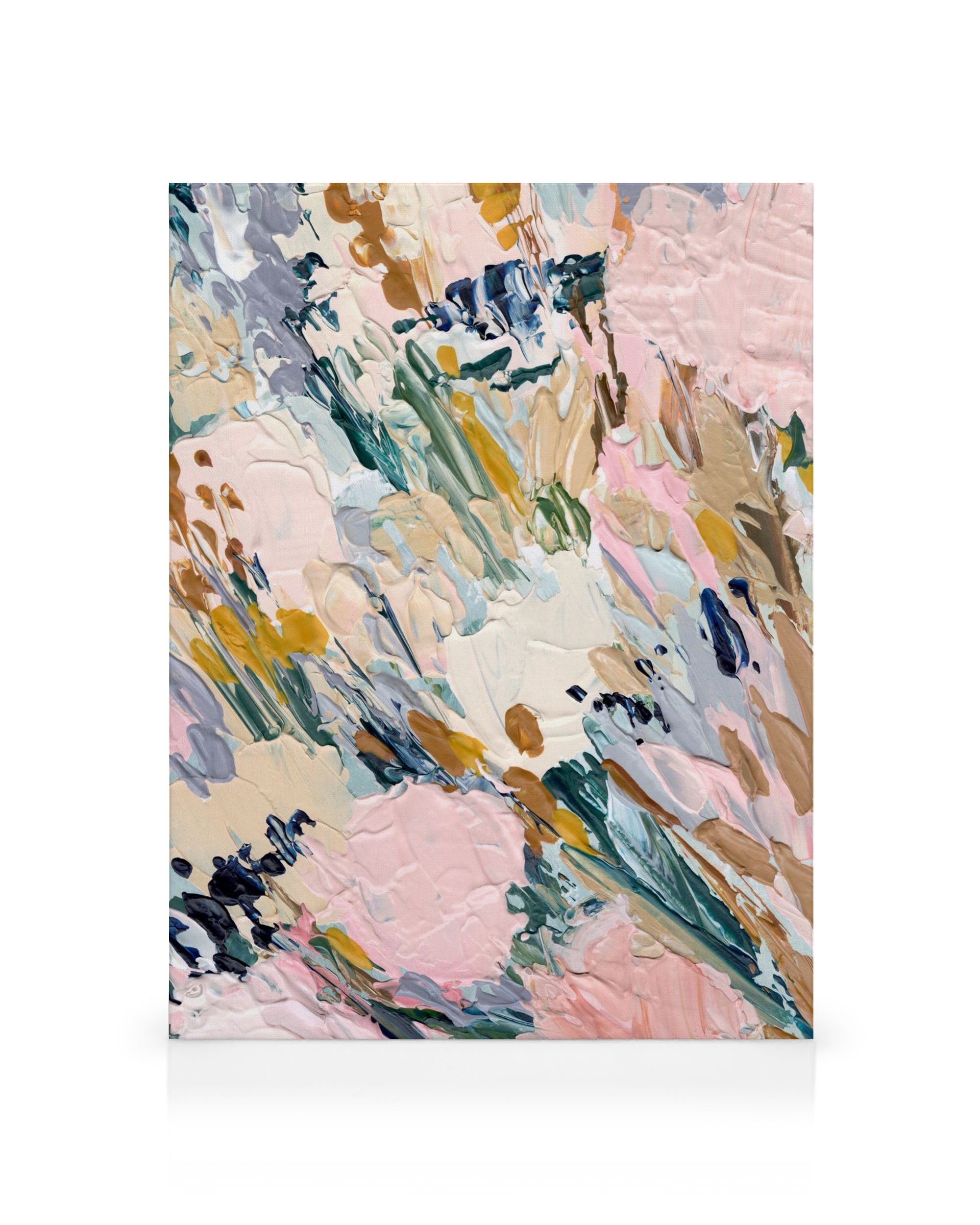 Hand-painted abstract canvas in pastel colours. Bring the art to your bedroom or living room! Perfect pair with Rêves de Pivoine.